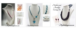 Butterfly Pendant & Necklace and Bracelet Set, Blue, Braided, Gold, Handmade A gold-coloured chain is intricately adorned with a hand-woven, blue-toned...