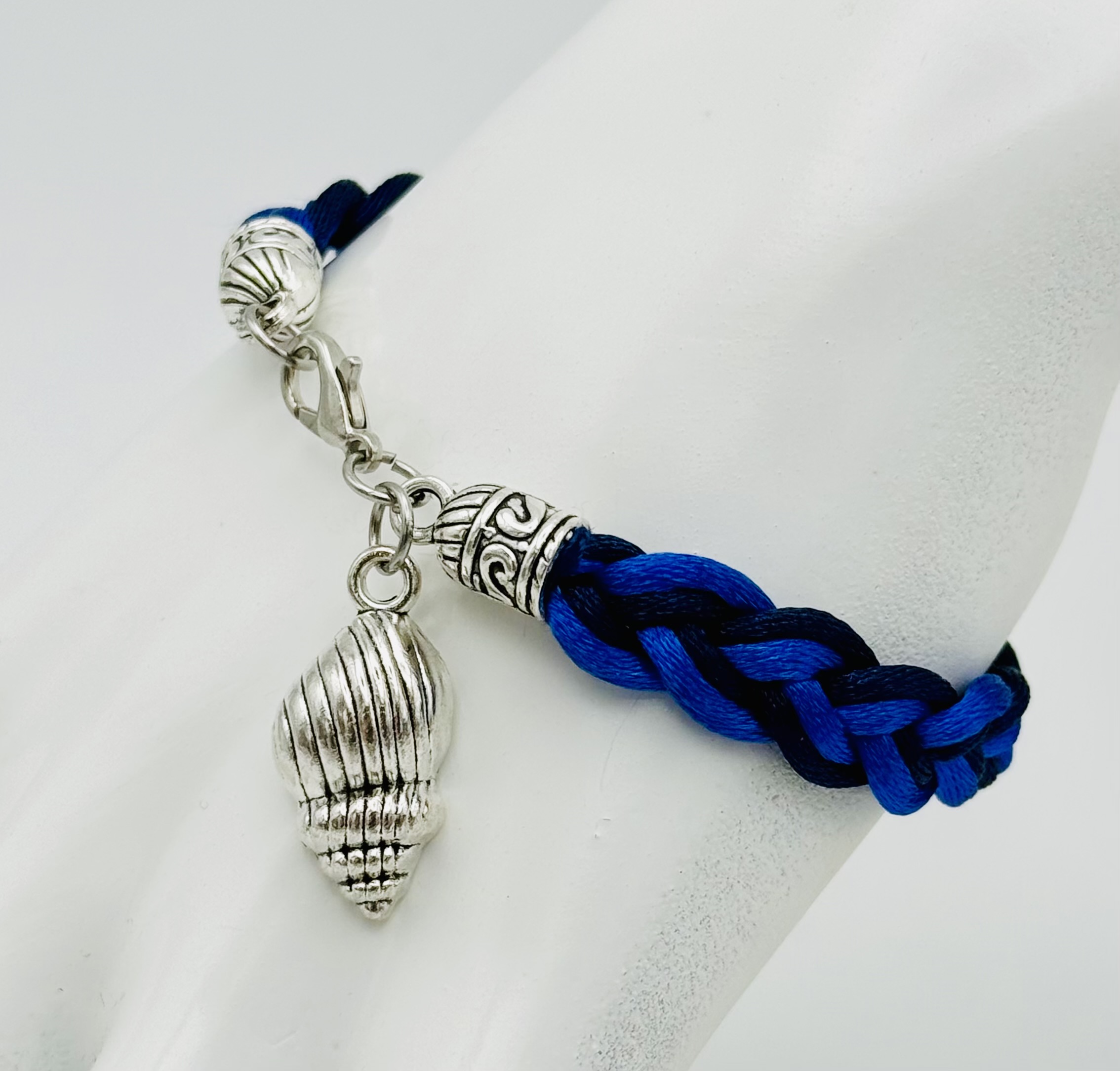 Blue Two-toned Braided Bracelet with Silver Charms,Ocean-theme