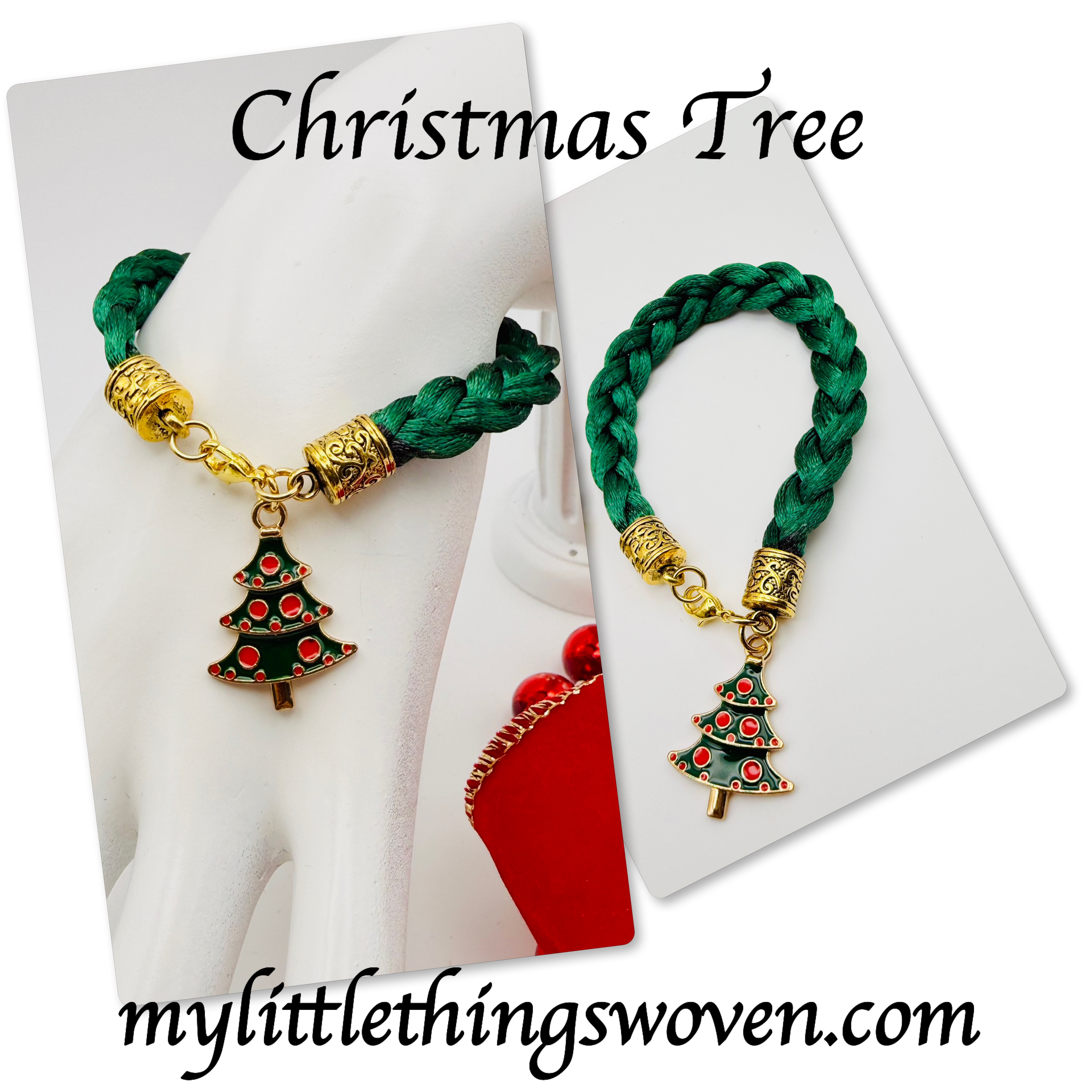 Colourful Christmas Charm Bracelets,Woven Braid,Gold Coloured