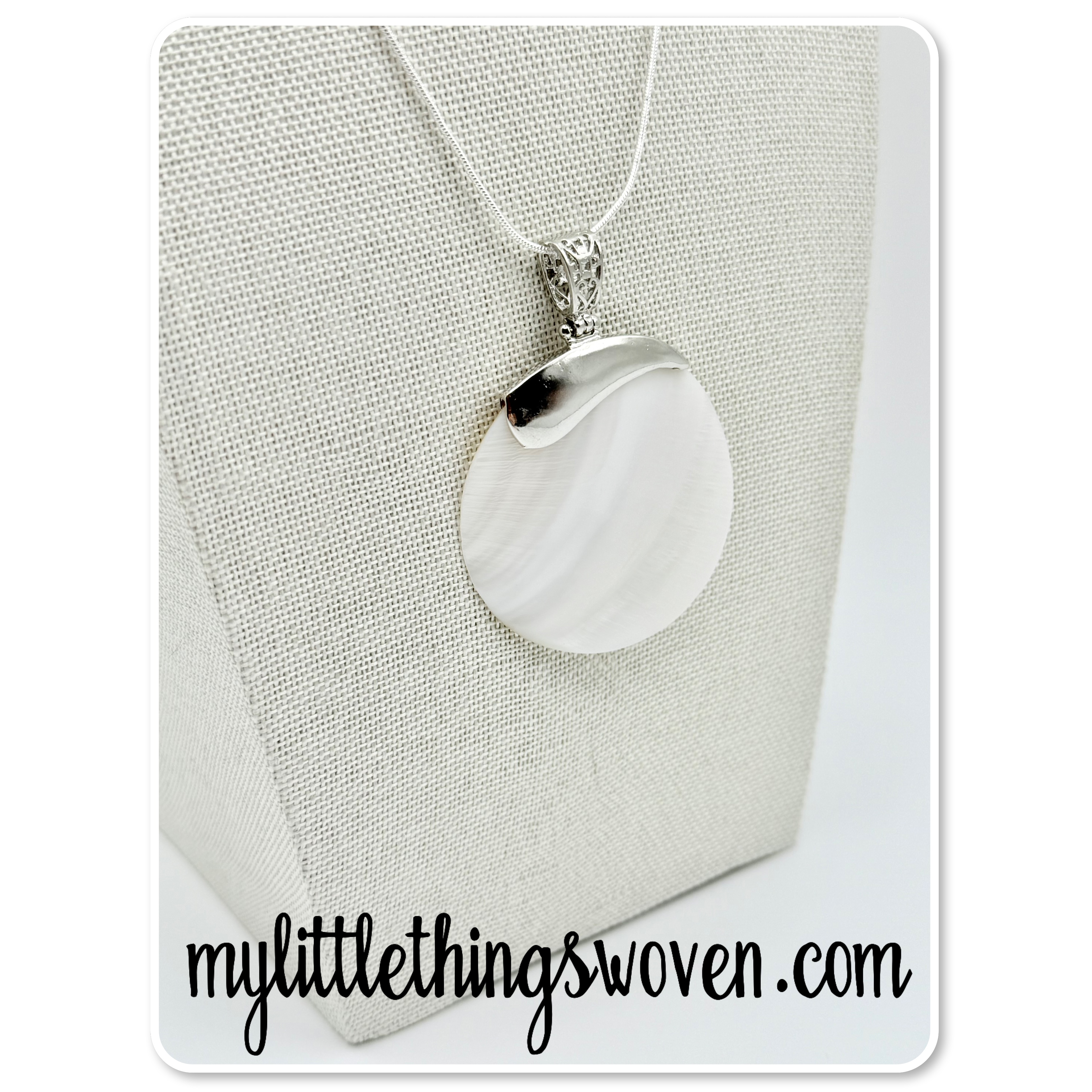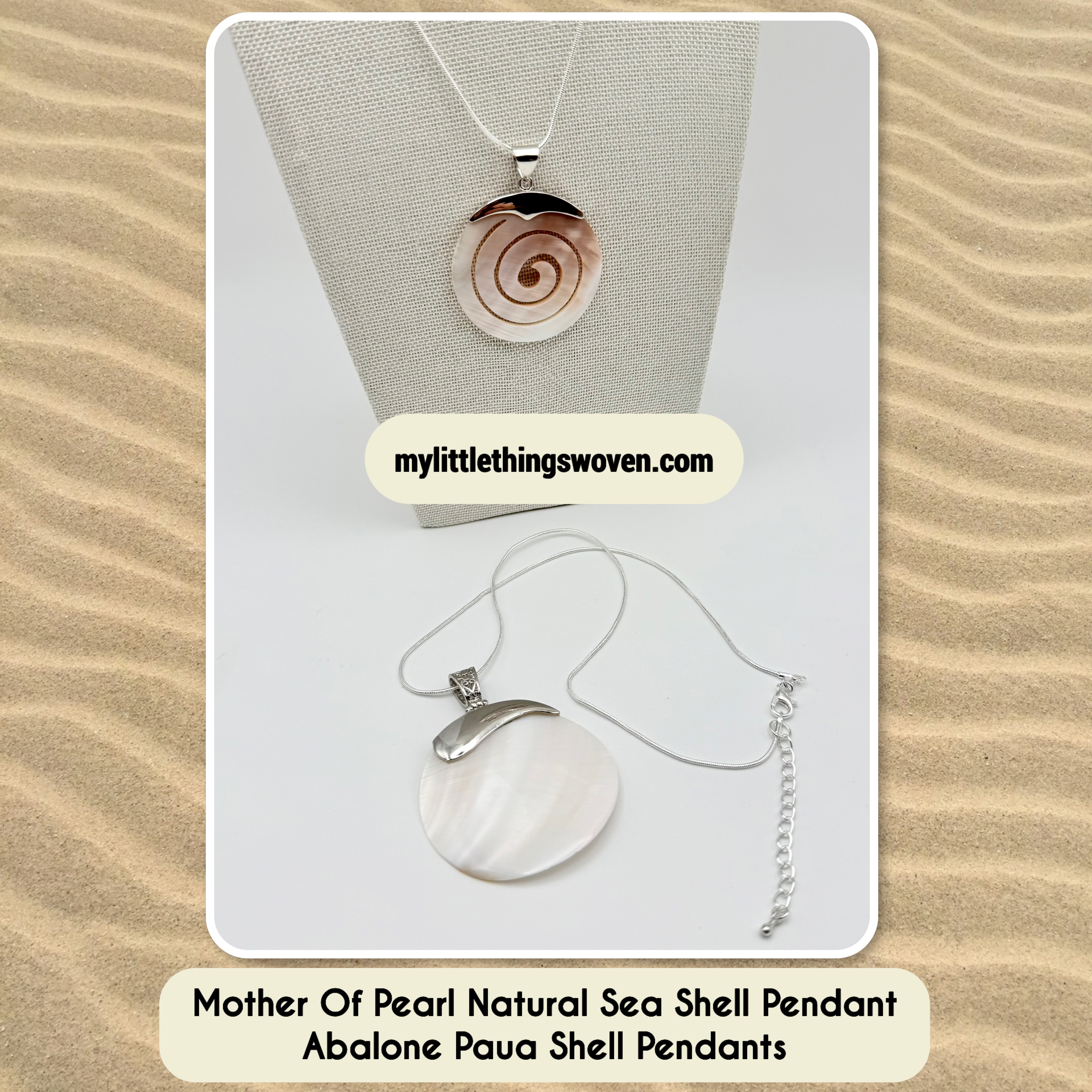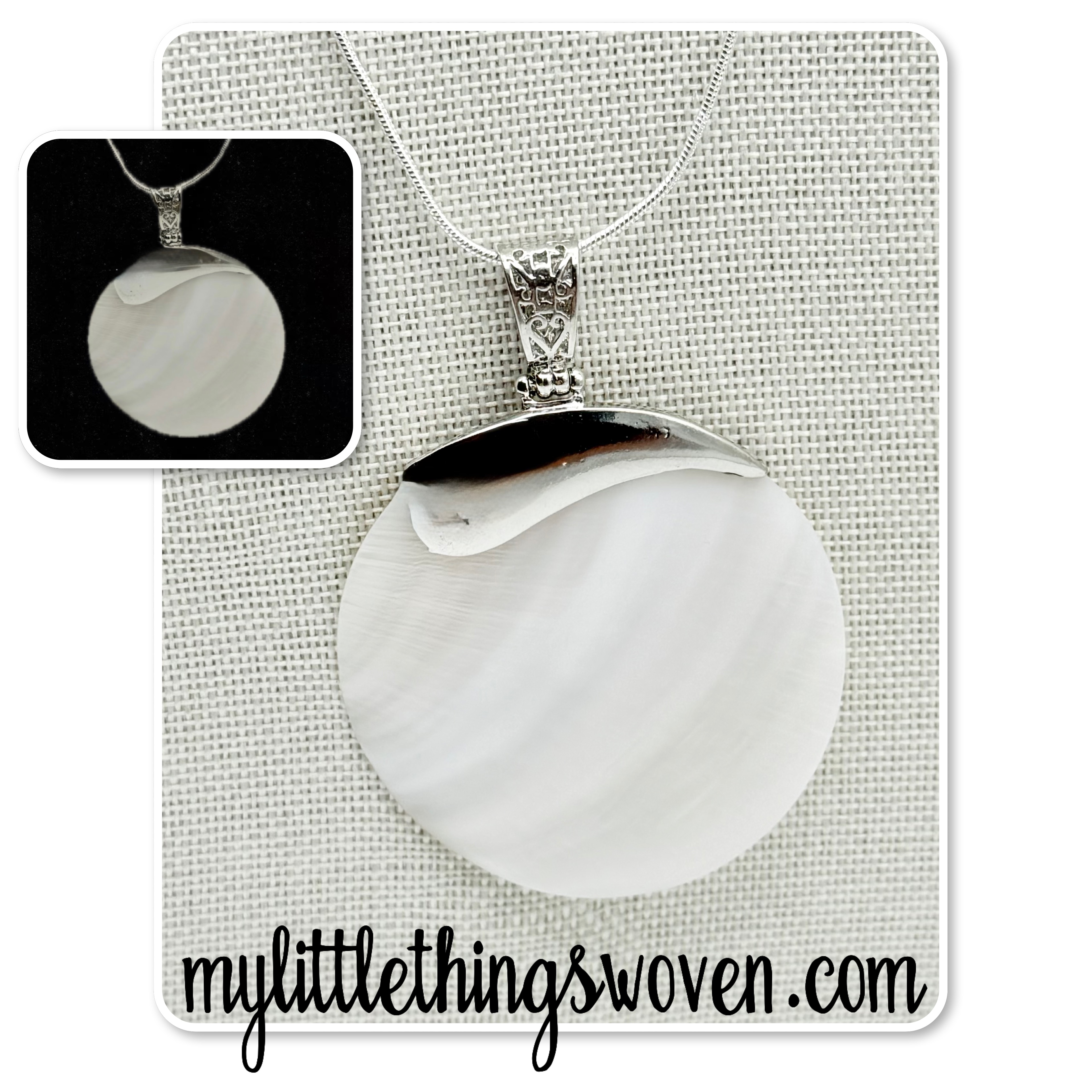 Mother Of Pearl Natural Sea Shell Pendant Shell Pendants on a Sterling Silver "Snake" chain.