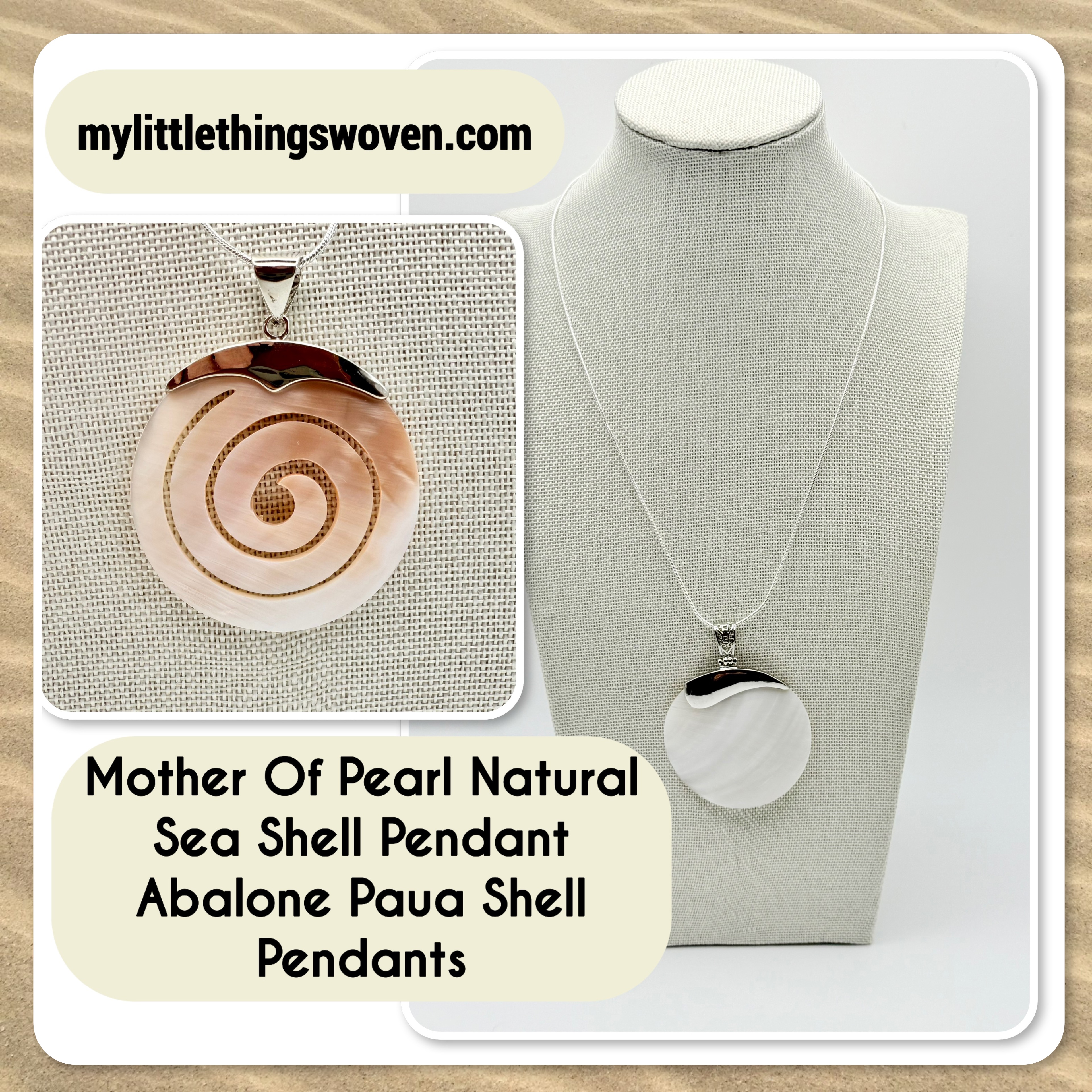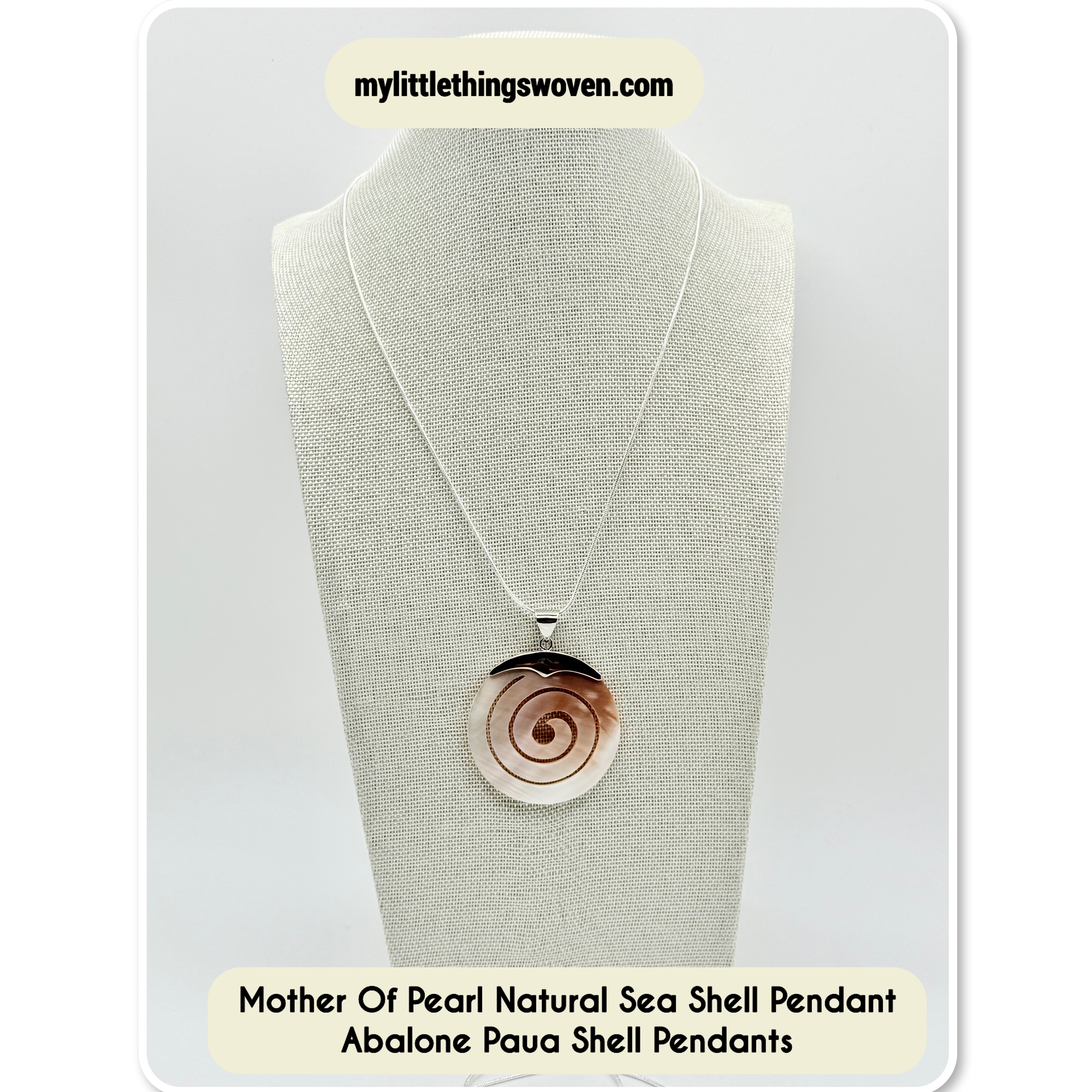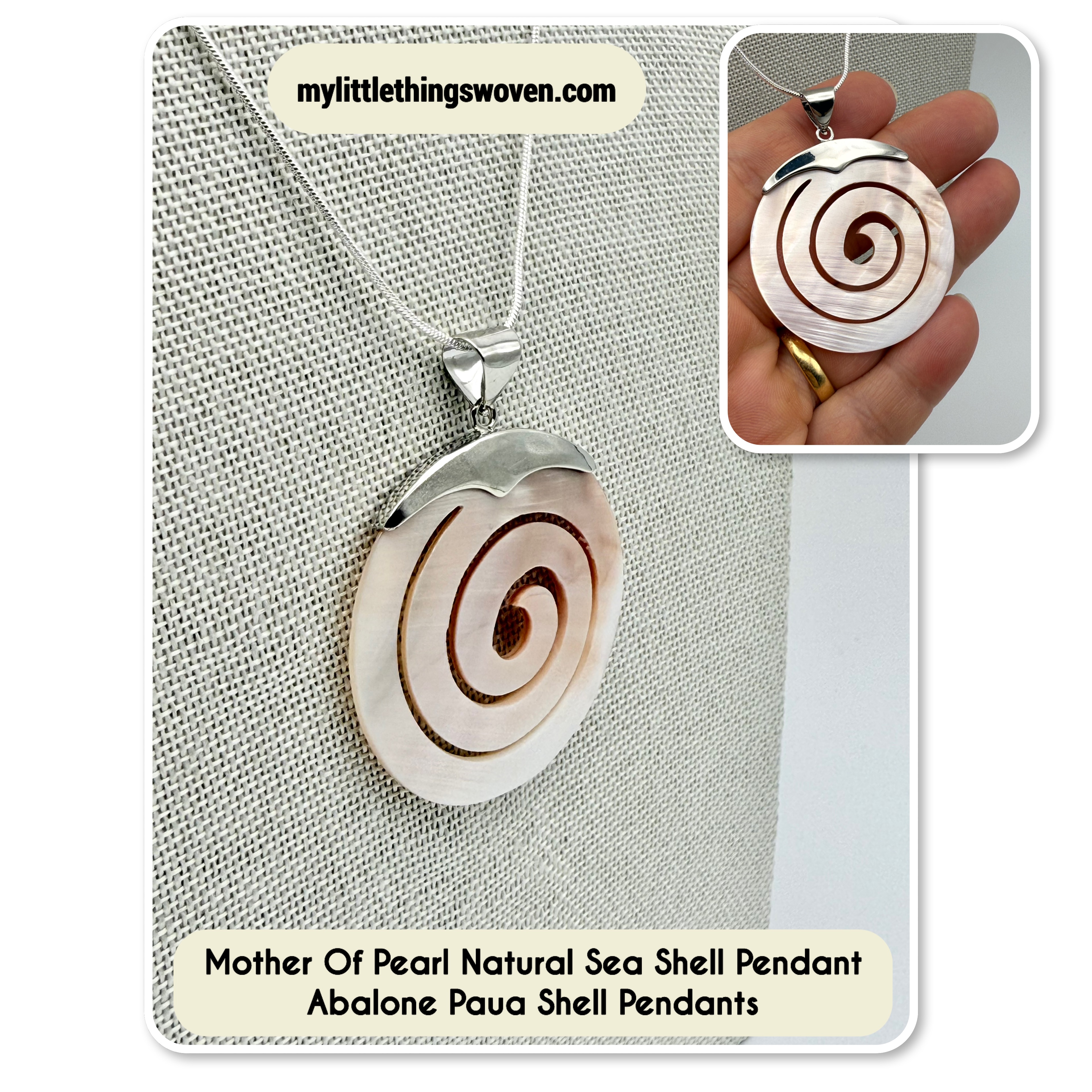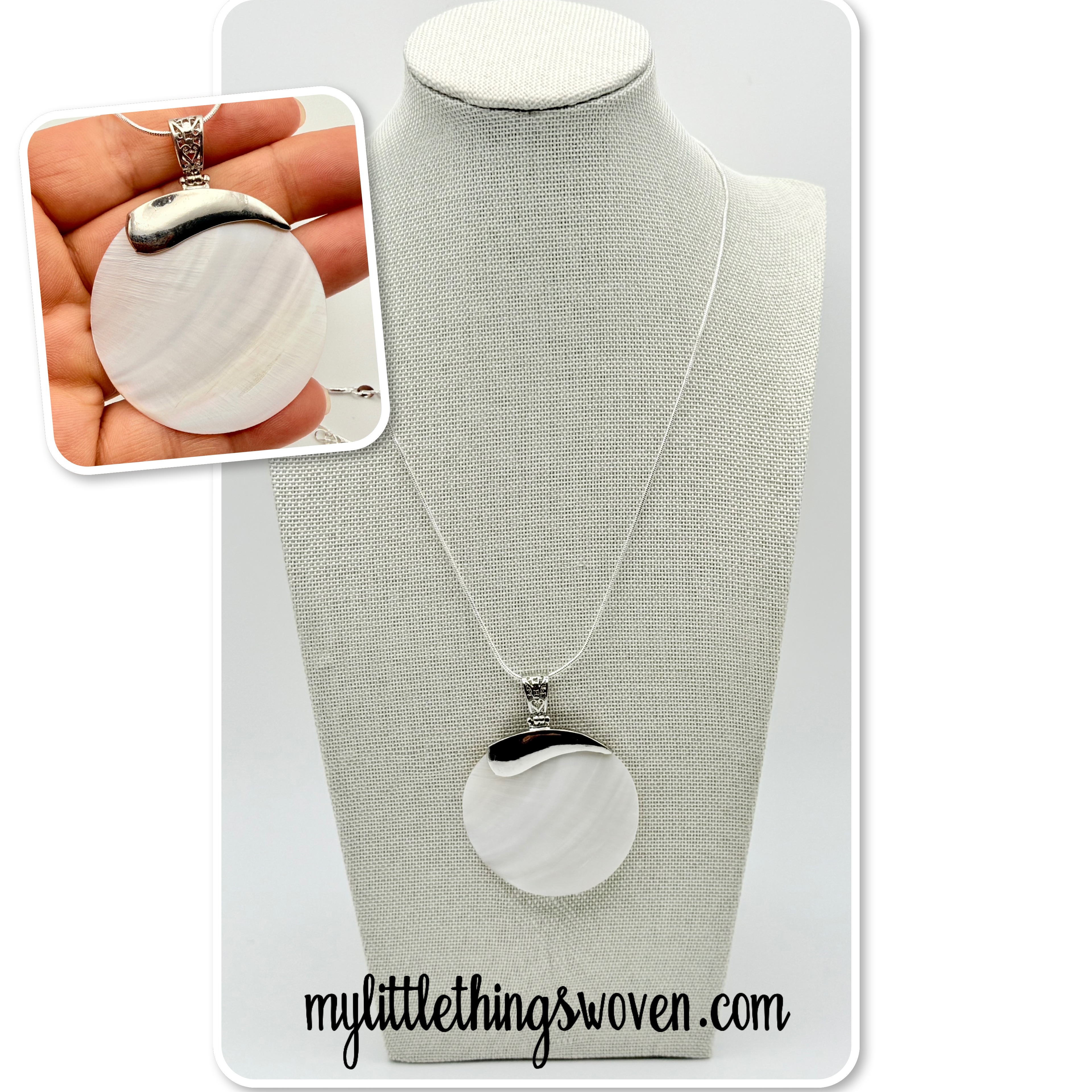 Mother Of Pearl Natural Sea Shell Pendant Shell Pendants on a Sterling Silver "Snake" chain.