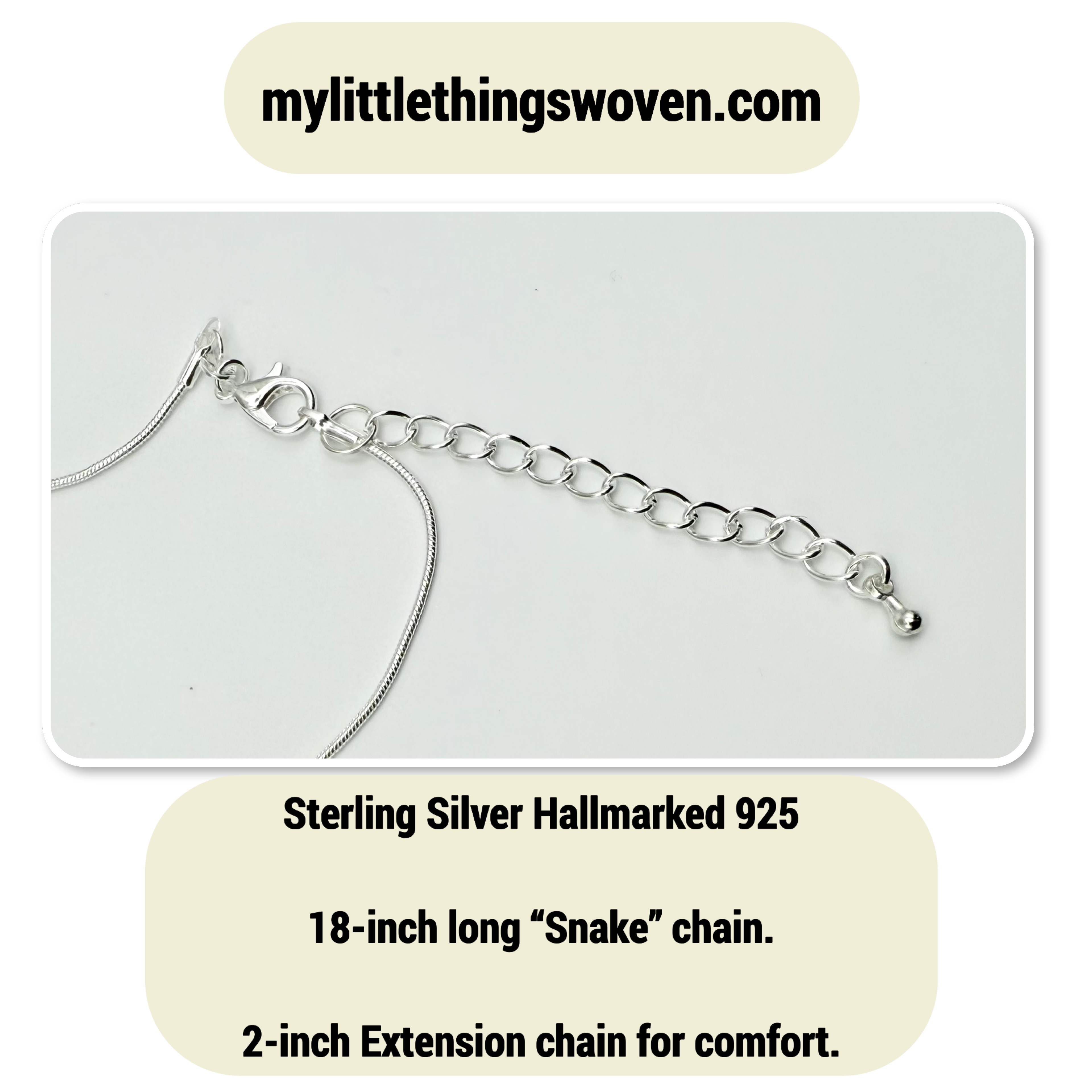 The pendants hang via sterling silver bails upon the sexy snake style chain which is 18-inches long and has a 2-inch extension chain for comfort.