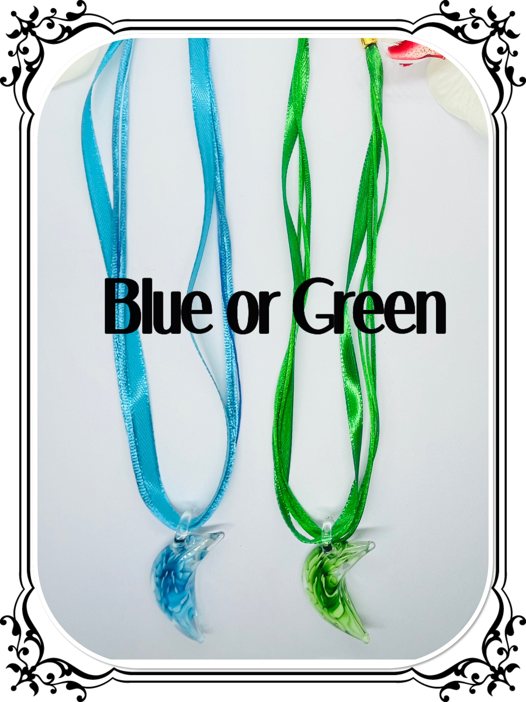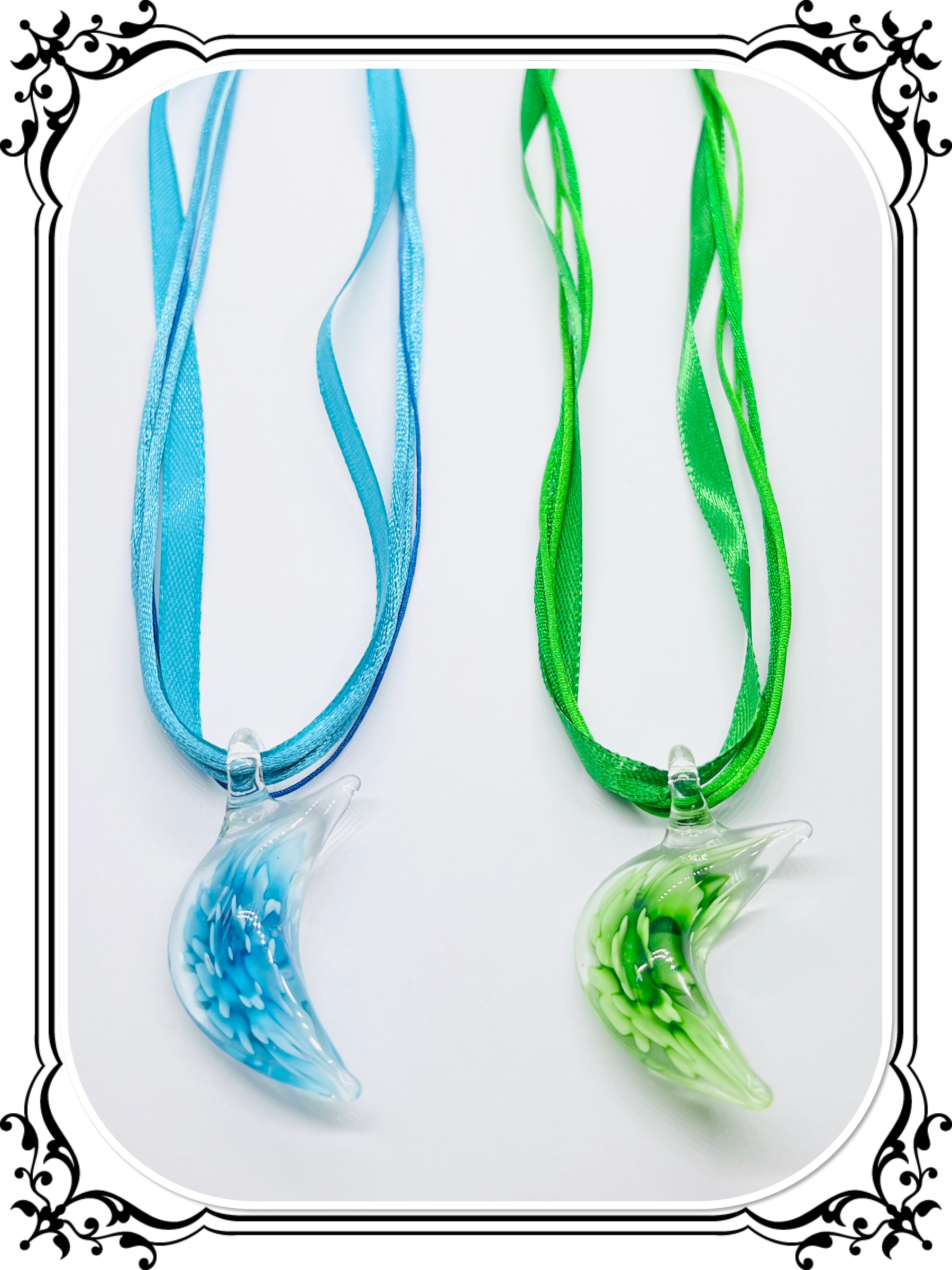 Murano Lamp-work Glass Crescent Moon Pendant & Necklace, Blue or Green