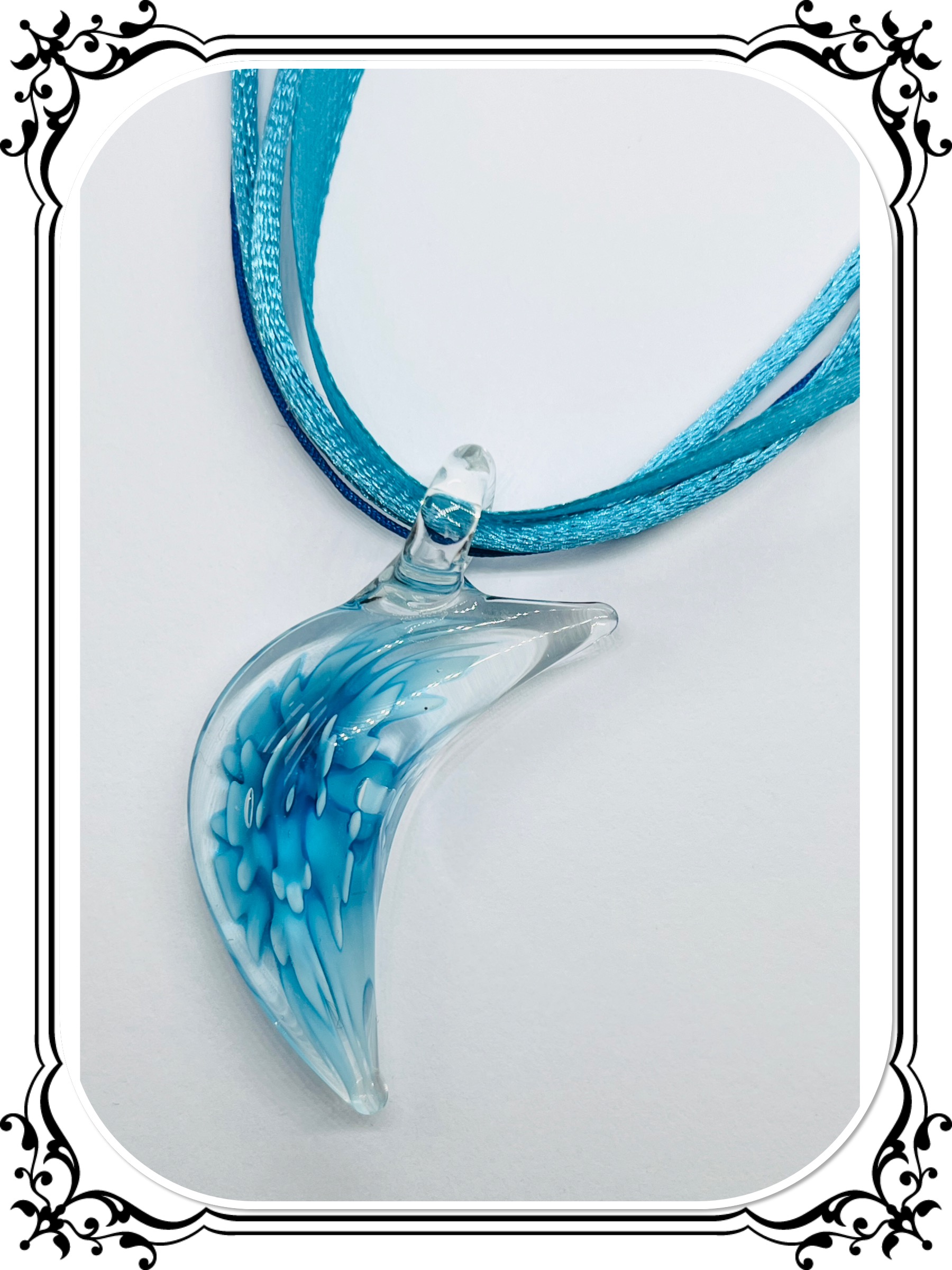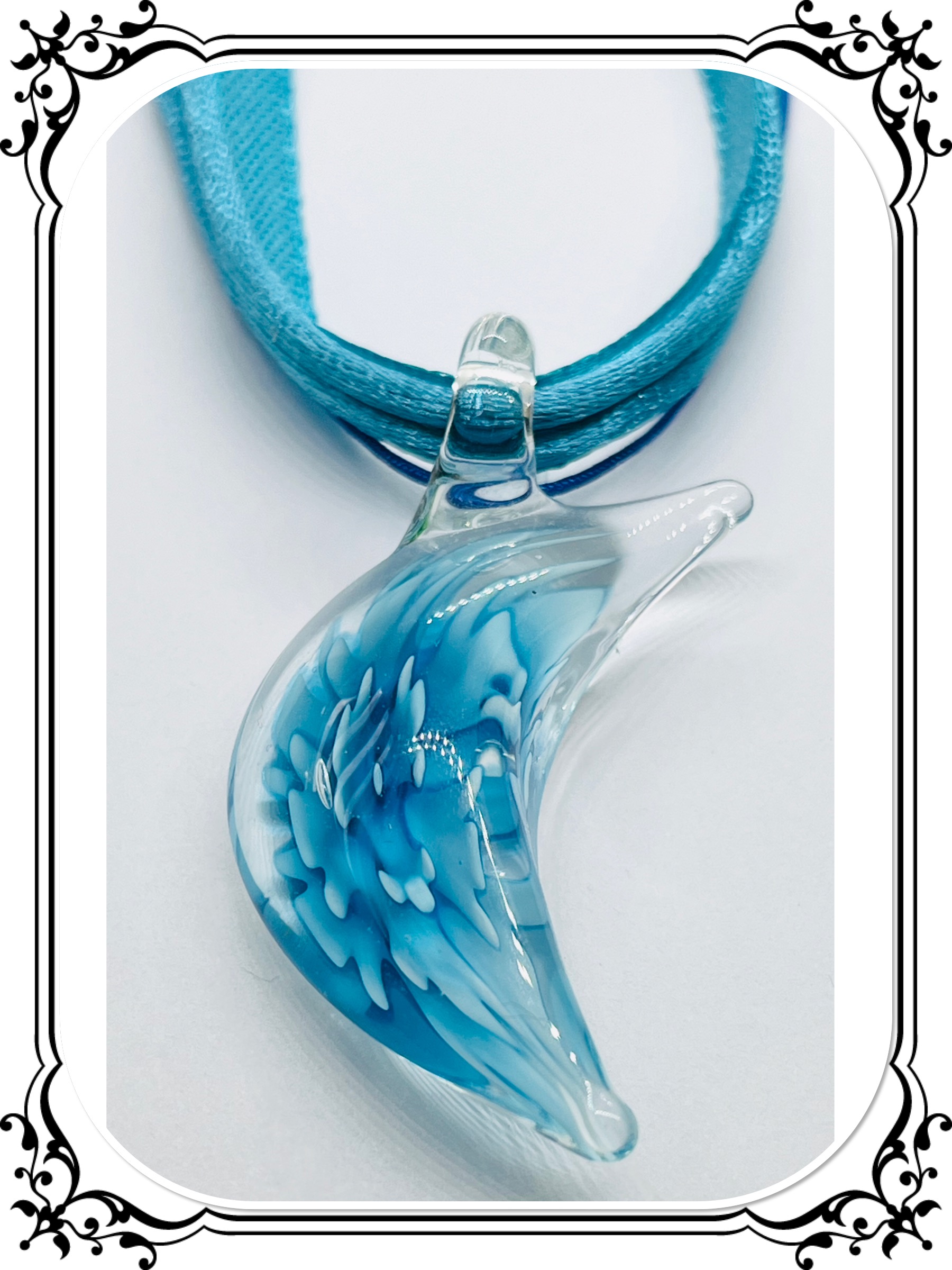 Murano Lamp-work Glass Crescent Moon Pendant & Necklace in Blue or Green
