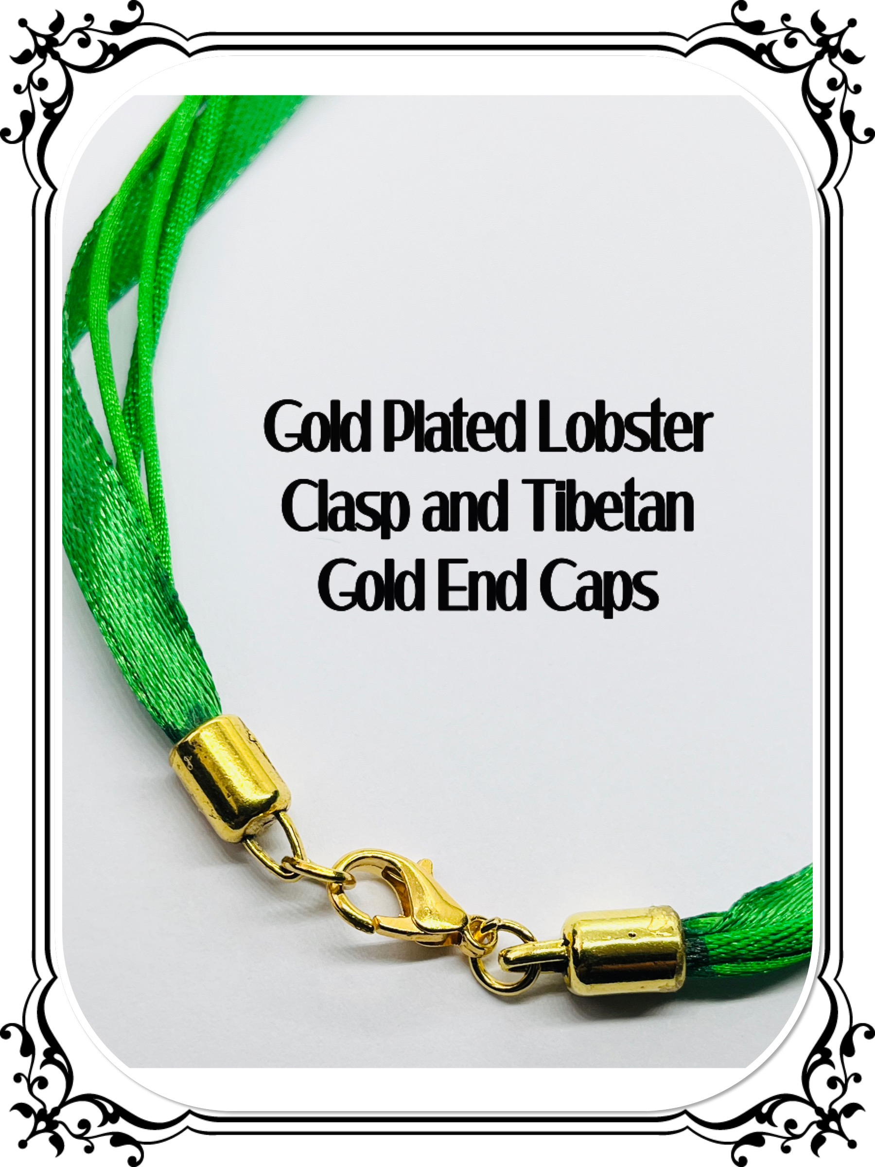 The end caps are Tibetan Gold and the lobster clasp is Gold Plated.