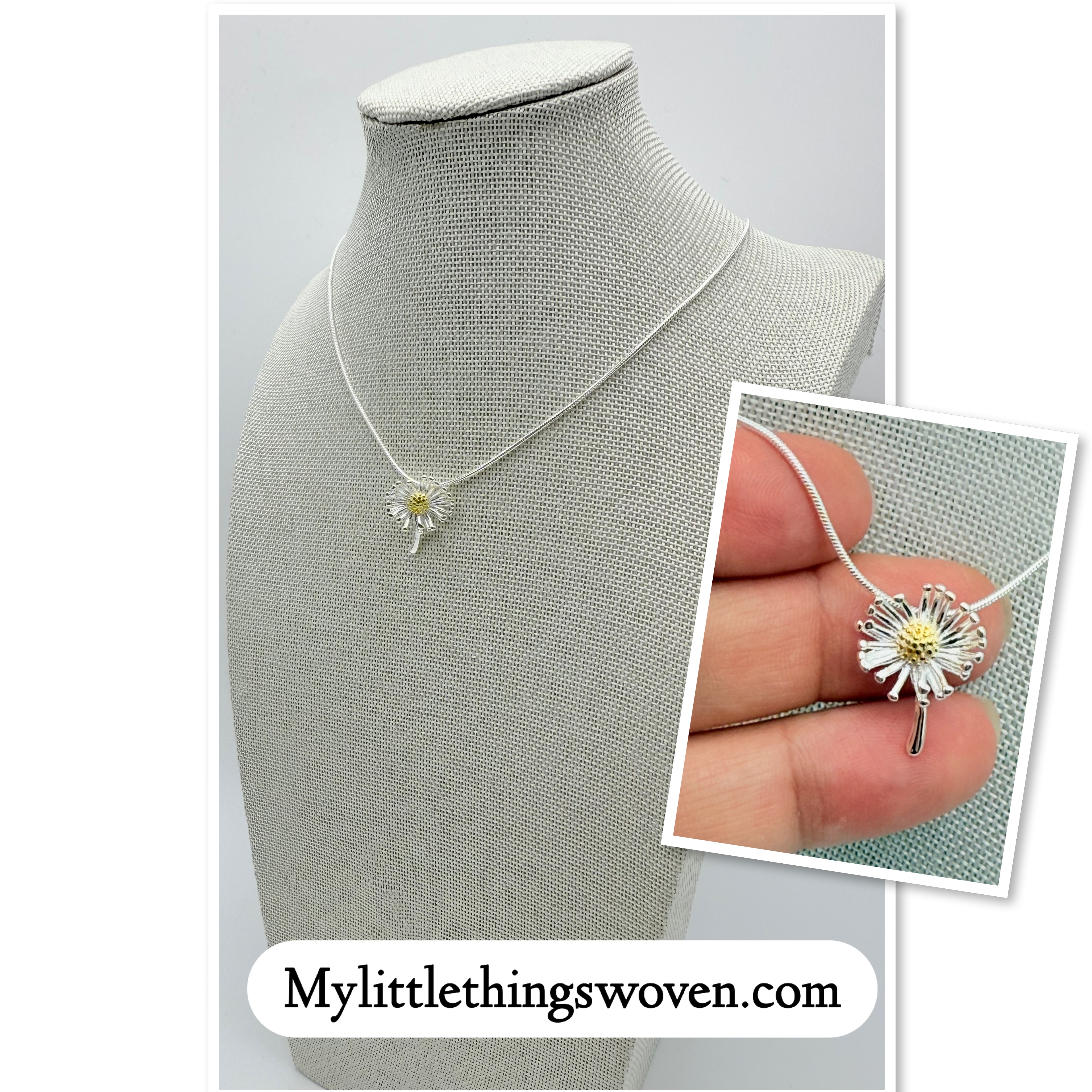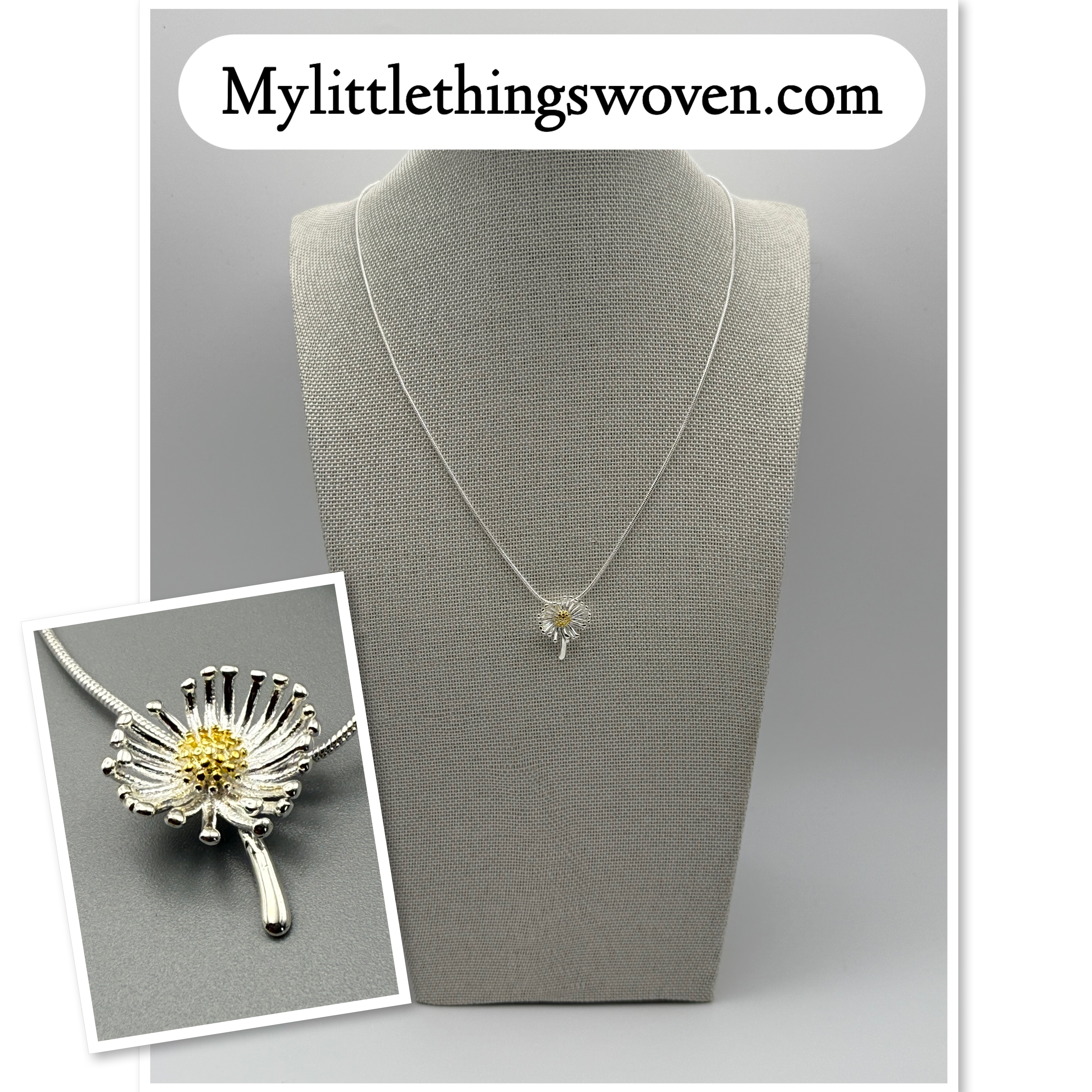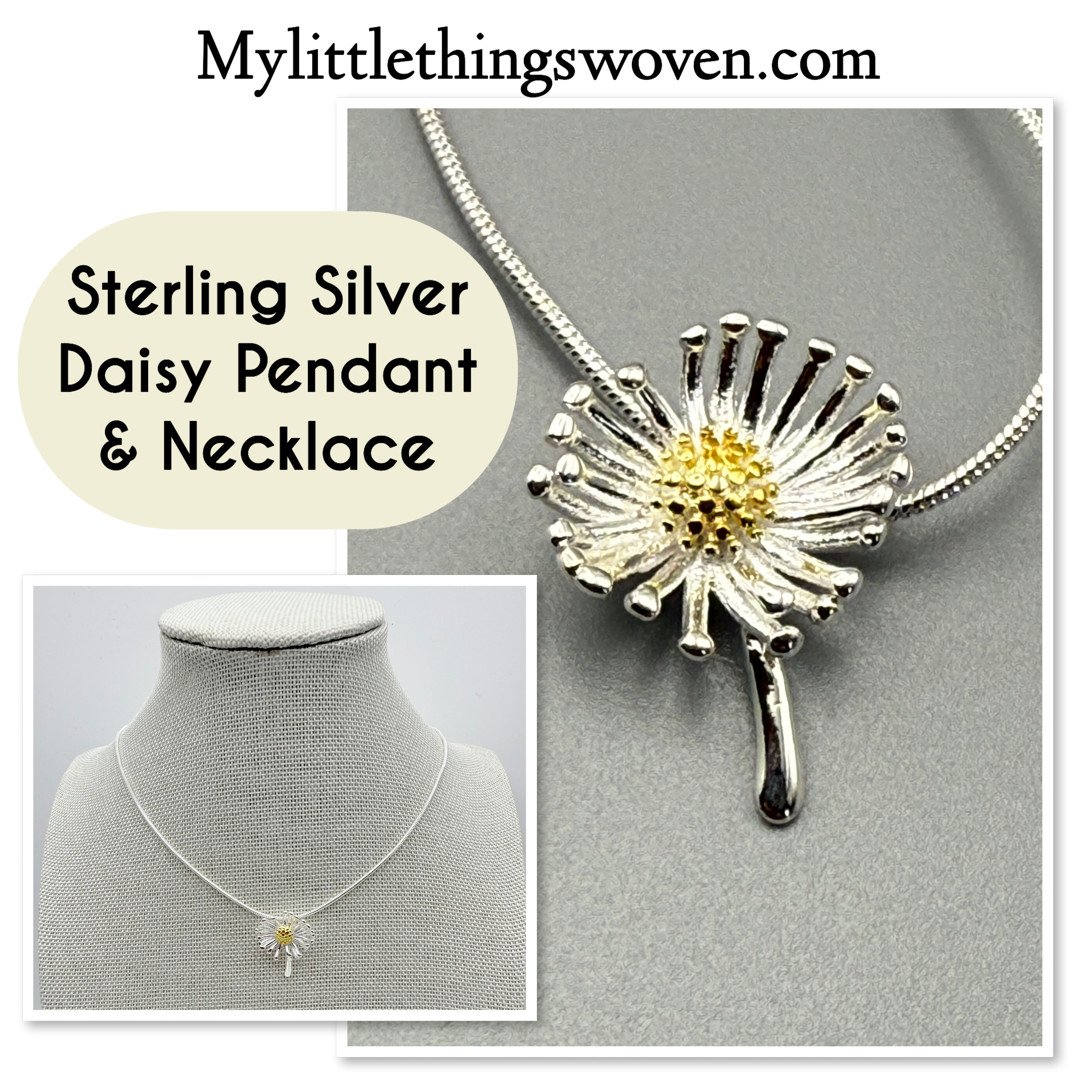 Sterling Silver Daisy Pendant and Necklace, Adjustable