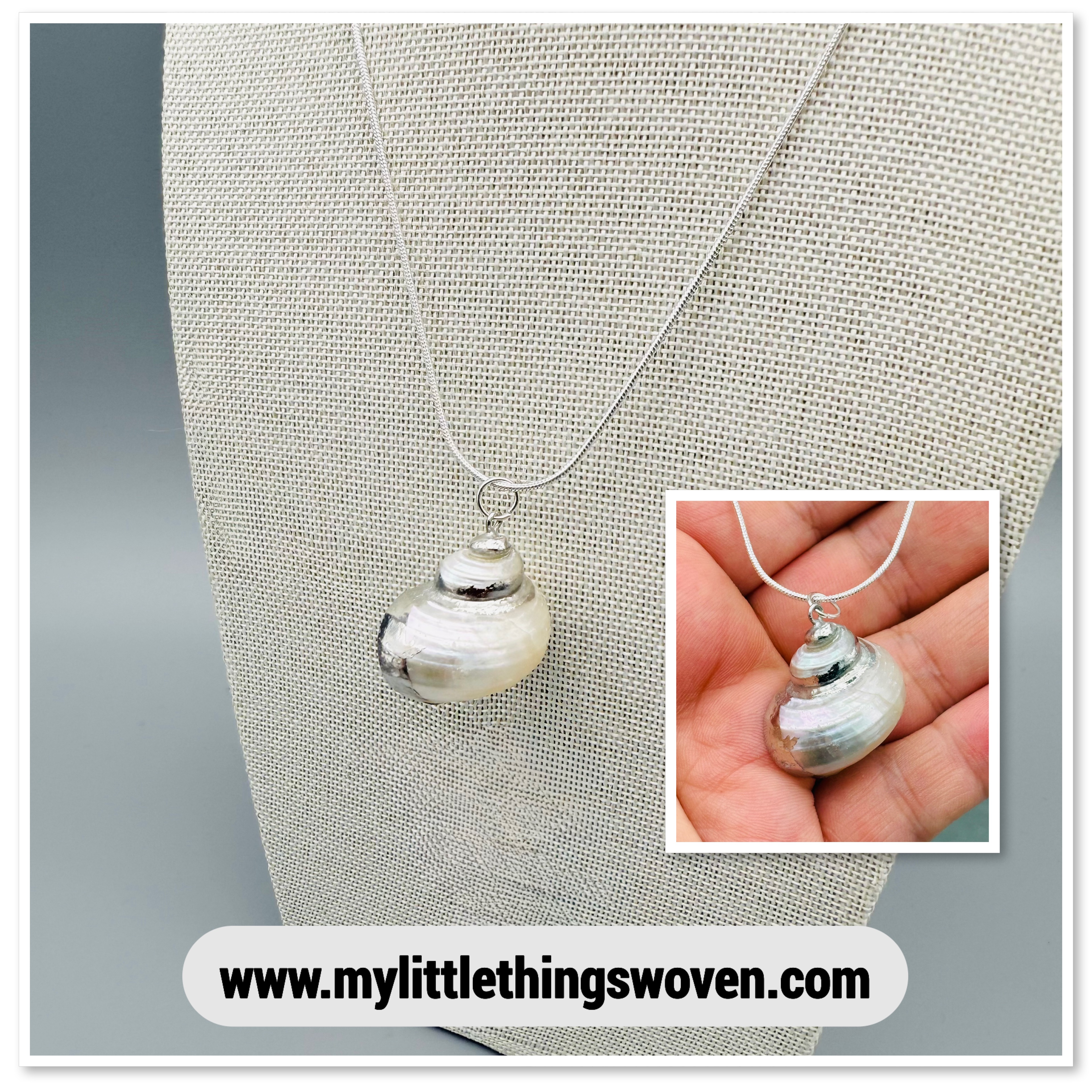 White Pearl Turbo Shell Pendant and Necklace, Silver 925, 18" Snake Chain, Adjustable