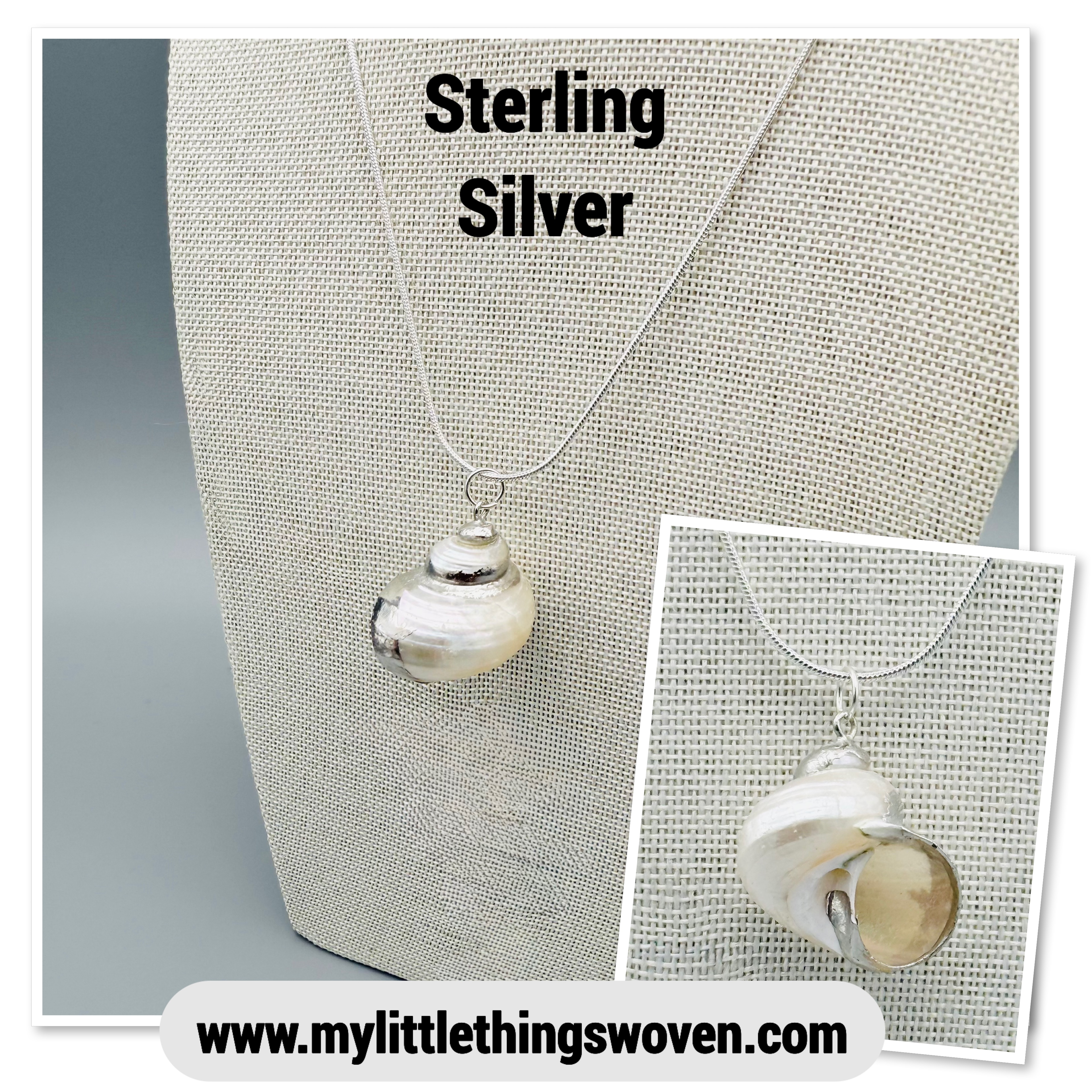 White Pearl Turbo Shell Pendant and Necklace, Silver 925